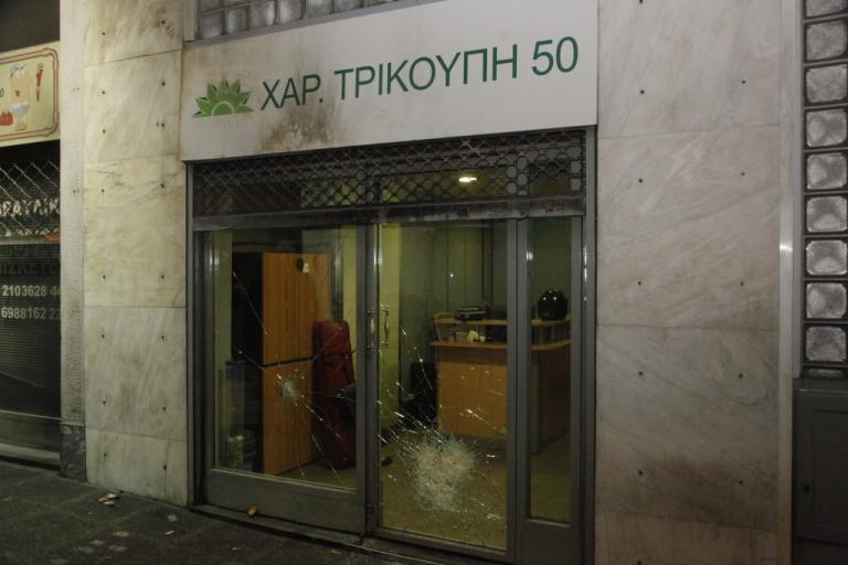 polizia di guardia alla sede del partito Socialista greco (Pasok) nel centro di